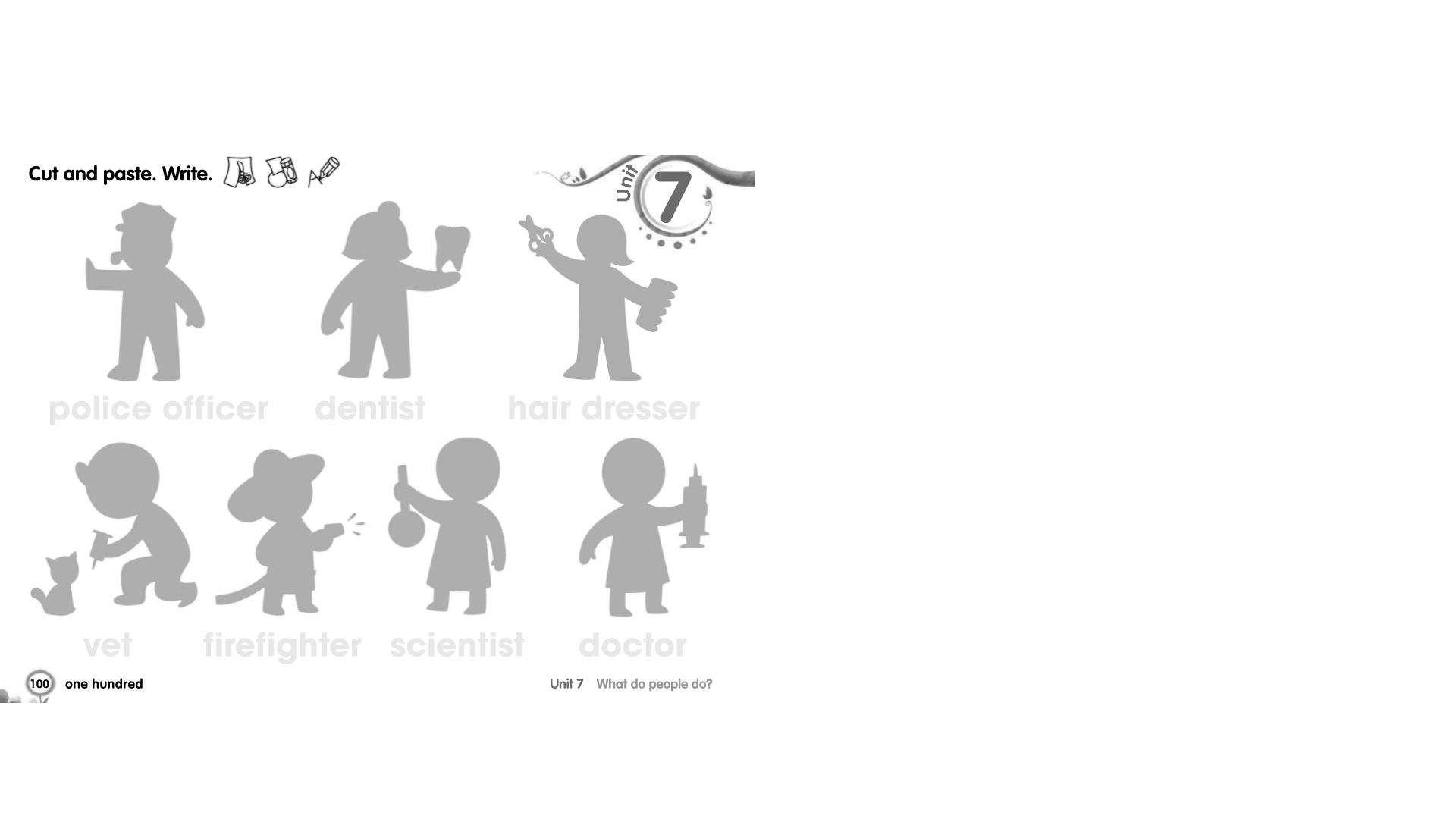 5. Realiza la pagina 100 del libro Crickets de ingles, traza las profesiones y busca imagenes de estas, pegalas en el lugar correcto.