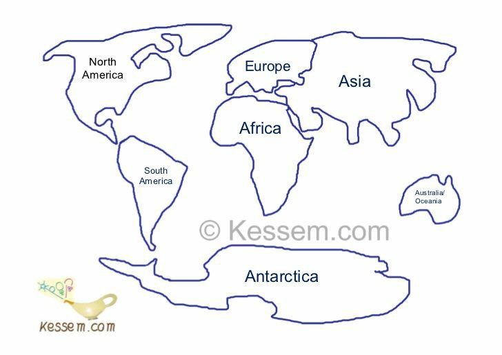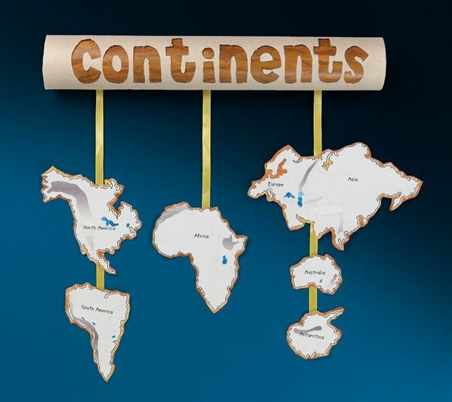 Realizamos una manualidad donde representamos los continentes (tal como se muestra en la imagen), formamos la palabra CONTINENTS con las letras recortadas de revistas o periódicos viejos.